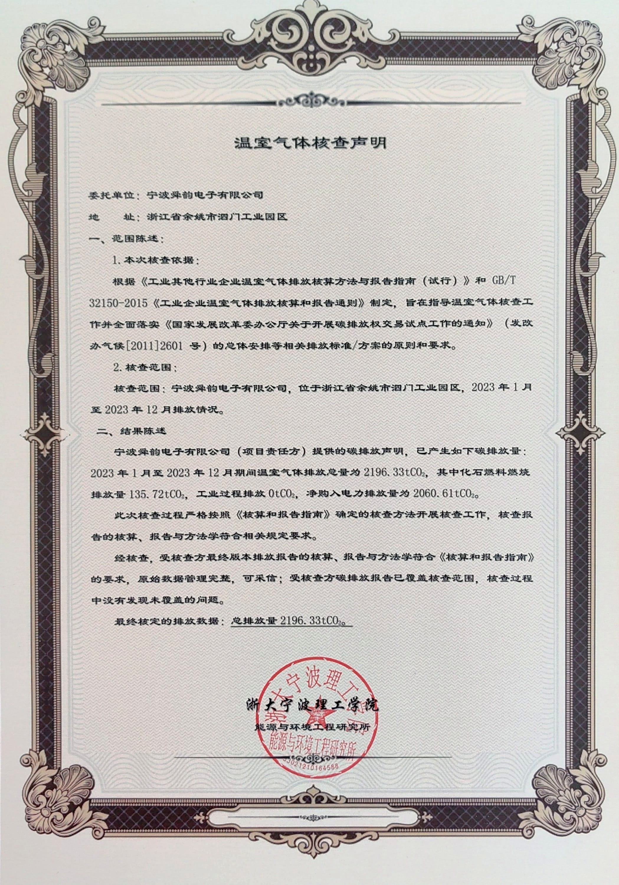 温室气体核查申明