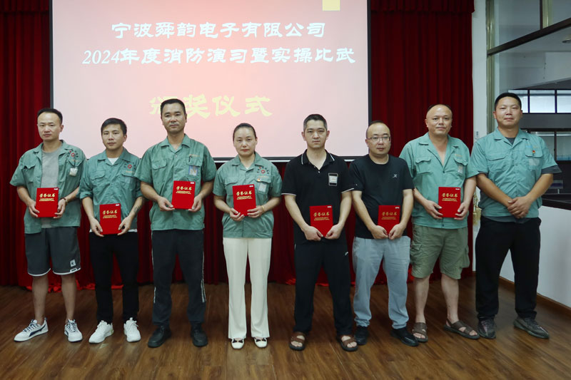 消防演习个人奖——消防演习优秀组织者奖:张贵芬、开关车间:李杰,华明日、组装车间:陈小平、DIP车间:顾林峰,陈大龙、接插件车间:但平安
