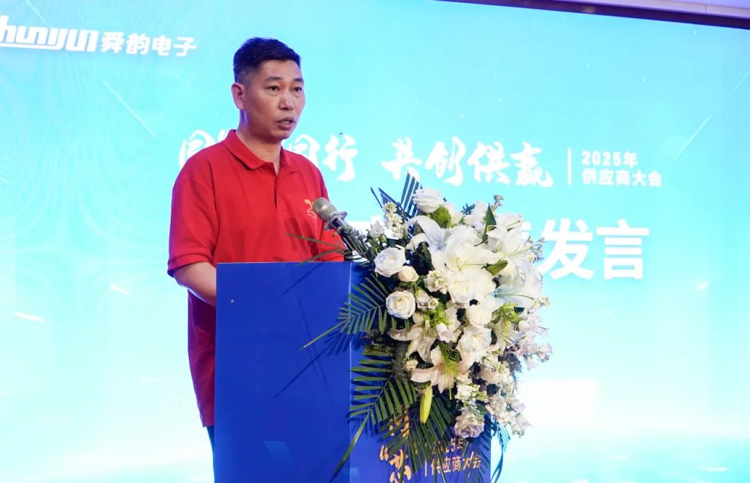 会议伊始,总经理姚韵均回顾了企业在复杂市场环境下的稳健发展,特别感谢供应商伙伴在关键时期的鼎力支持。面对当前经济下行与行业竞争压力,舜韵在“智能控制系统解决方案引领者”为愿景的指引下,通过强化研发、制造和供应链协同能力,推动高质量发展。姚总强调供应链竞争的核心在于响应速度与价值创新,呼吁供应商伙伴在质量效率、服务配合、长期价值三方面深化合作,共建透明高效、风险共担的伙伴关系,携手突破内卷困境,实现终端客户价值提升。