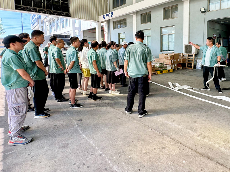 疏散演练结束后,马建栋组织全体员工开展消防技能培训,尤其针对新入职员工进行重点指导。培训聚焦两大核心技能:一是灭火器 “提、拔、握、压” 的标准操作要领,二是消防水带的两人协作使用方法。通过细致讲解与现场演示,员工们对消防器材的使用有了更清晰的认识,进一步夯实了应对初起火灾的技能基础。