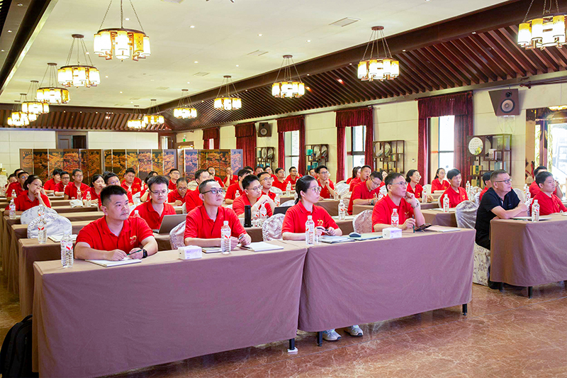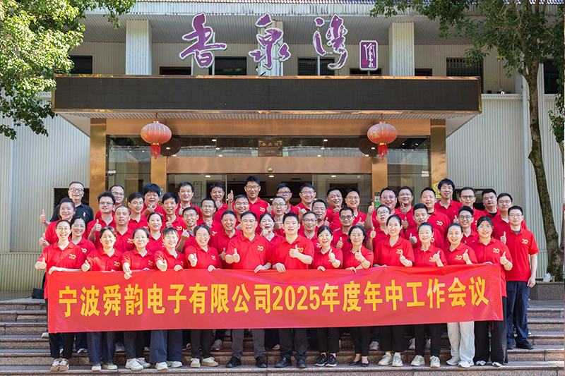 8月23日,宁波舜韵电子有限公司2025年度年中会议在香泉湾山庄顺利召开。会议以“稳基拓新·聚力增长”为主线,系统回顾了上半年工作成效,科学分析研判了当前形势,全面部署了下半年重点工作,动员全体员工凝心聚力、攻坚克难,确保全年目标顺利实现。集团董事长姚国祥、总经理姚韵均及车间主任以上管理人员出席会议。