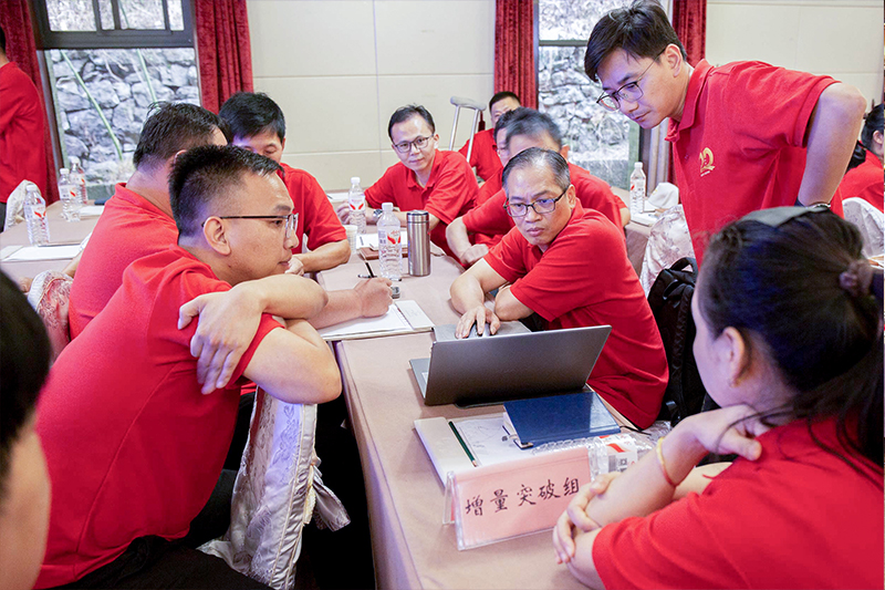会议期间,组织开展团队拓展活动。在拓展活动进程中,参训人员突破了惯性思维的局限,于协作挑战中进一步深化了彼此间的信任,凝聚了团队精神。同时,围绕“存量深耕、增量突破、能力筑基、机制创新”四大命题,各小组展开激烈的研讨,既深入剖析了问题的症结所在,又提出了切实可行的落地举措。存量深耕组围绕“挖潜、提质、增量”发力,聚焦内部潜力挖掘实现降本增效,探索老客户价值提升路径;增量突破组以线束领域为切口,规划智能控制器新场景拓展方案;能力筑基组锚定供应链、数字化、人才三大核心,压实责任部门与落地举措;机制创新组直击考核与降本机制短板,提出“拆掉部门墙”的优化方案。四组成果环环相扣,构成“生存之本、发展之翼、核心引擎、控制系统”的“四轮驱动”解决方案,将“稳基拓新”的目标转化为具体路径。