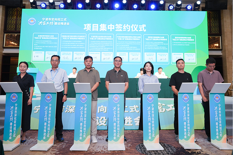 8月26日上午,宁波市深化定向招工式“共富工坊”建设推进会在余姚举行。浙江省工商联党组成员、副主席元成茂,宁波市委统战部副部长、市工商联党组书记王建云,宁波市委组织部副部长高云成等领导莅临舜韵电子“共富工坊”调研考察,余姚市委常委、组织部部长郎客宾,余姚市委常委、泗门镇党委书记张明,余姚市委常委、统战部长李昭陪同考察,宁波市委组织部、统战部,市发改委、经信局、人力社保局等11个机关处室负责人,各区(县、市)组织部、工商联分管领导及业务科室负责人,余姚市直有关部门主要负责人、商会和工坊代表等150余人参加考察,会议由宁波市工商联党组副书记、副主席、二级巡视员钱爱民主持。舜韵电子董事长姚国祥实地介绍舜韵电子“共富工坊”情况。