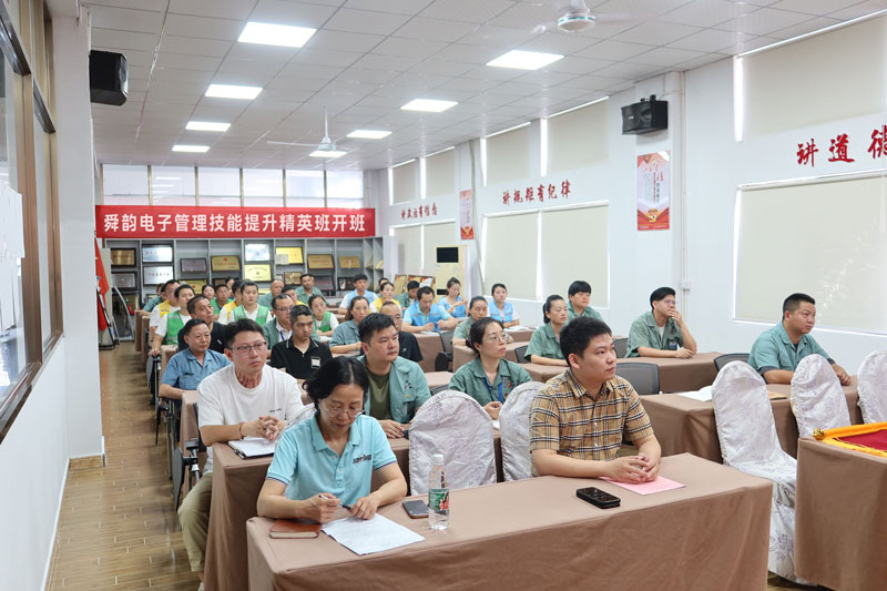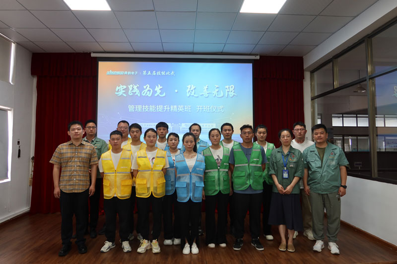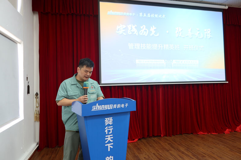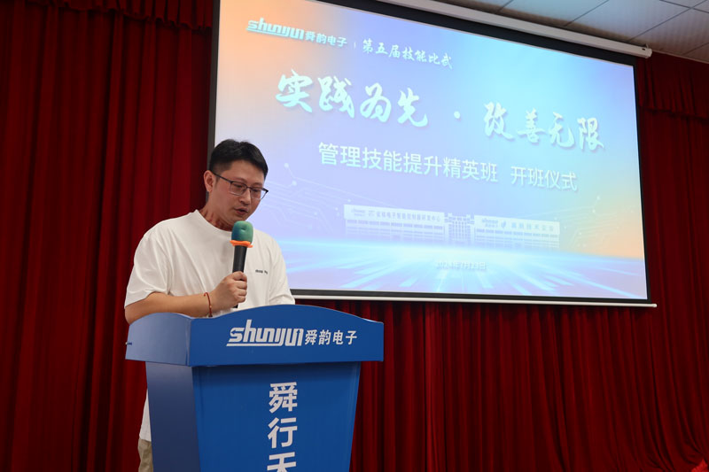 2024年7月23日上午,宁波舜韵电子有限公司于“员工之家”三楼的党群会议室举行了第五届技能比武“实践为先·改善无限”管理技能提升精英班的开班仪式。舜韵电子总经理姚韵均、副总经理邵玲玲及各授课教师,全体精英班学员亦齐聚一堂,共同见证了这一重要时刻。
