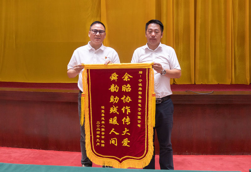 昭觉县残联向宁波舜韵电子有限公司赠送了旌旗表示感谢!