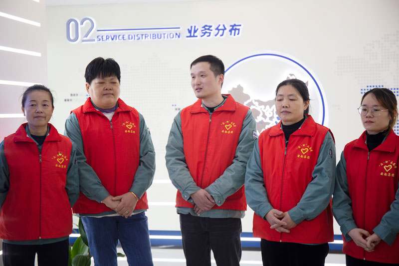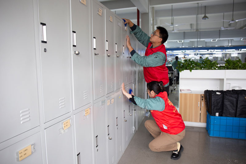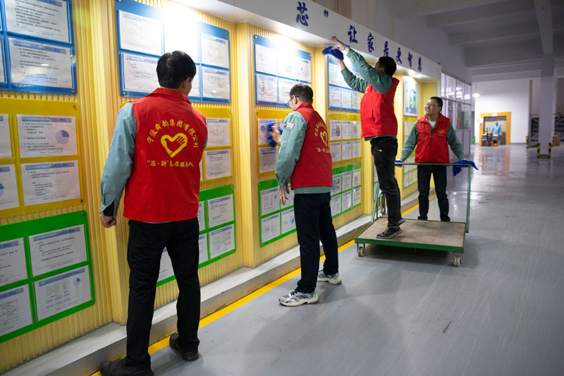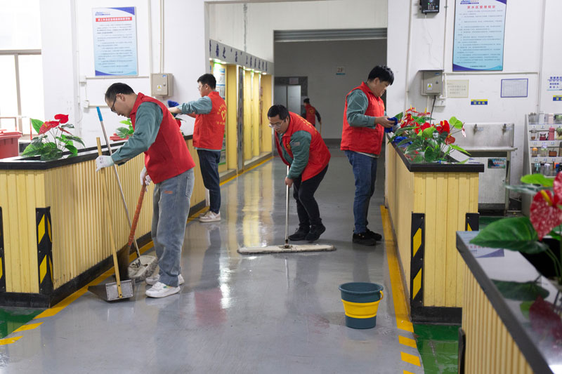 2024年12月的第一个周六,各总监、部门长、部门经理、车间主任们,拿起抹布,拎起水桶,搞起卫生一点不含糊,大家分成4组分别对4幢生产区的员工休息区、公共楼道等区域来了一次大扫除。活动由副总经理邵玲玲亲自带头。可能在平时,他们在各自岗位上熠熠生辉,是一丝不苟的管理者,是排头兵;但是今天,他们穿上红色的“芯”斛志愿者马甲,他们的角色就只是一名无私奉献的志愿者。