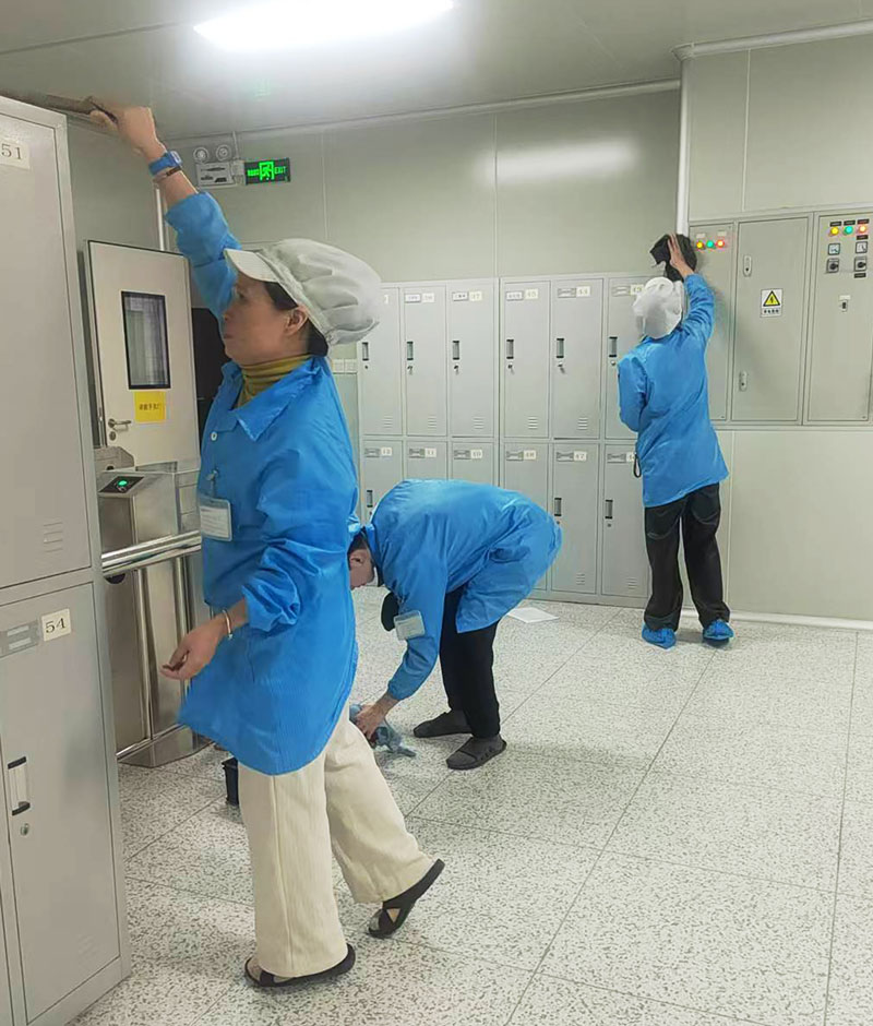 12月8日,DIP车间在车间主任刘小容带领下,车间班组长一起参与进行“扫除道日”践行活动。清扫员工休息区、更衣室、风淋门等区域卫生,为他们火速推行带头引领点赞!