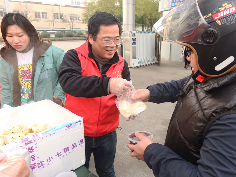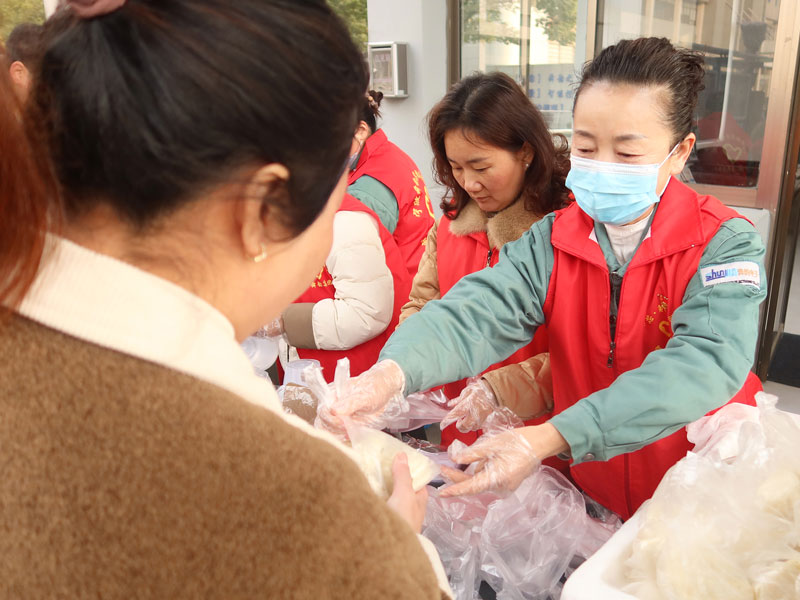 1月7日清晨,身穿红色马甲的工会委员们便忙碌起来,他们早早地来到现场,把一份份热气腾腾的馒头和腊八粥分装打包,并热情地将包子和腊八粥传递到舜韵家人手中。家人们脸上都洋溢着笑容,纷纷表示这样的活动让他们感受到了来自集团工会的关怀和温暖