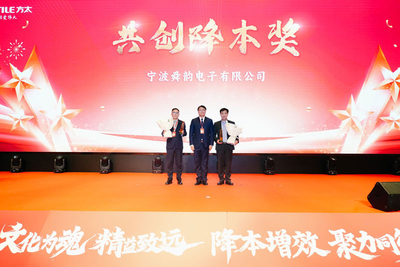 2025年3月19日,宁波舜韵电子有限公司在方太集团2024年度供应商大会上荣获共创降本奖。在现今市场环境中,企业间的合作早已不是简单的供需关系,而是向着更深层次的共赢发展。舜韵电子在与方太集团的合作中,通过持续改善与创新,不仅提升了自身竞争力,也为合作伙伴创造了更大的价值,实现了合作共赢的新高度。