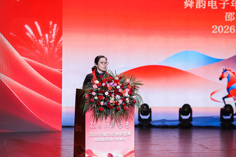 盛典伊始,舜韵集团副总裁、舜韵电子总经理姚韵均发表新年致辞,向过去一年坚守岗位、勤勉付出的全体员工致以最诚挚的谢意。姚总指出,2026年厨电新国标的正式实施,将引发行业深度变革——国补政策虽逐步收缩,但客户品牌升级需求与赛道拓展机遇同步凸显。企业需聚焦硬实力提升,深化零缺陷品质文化与“检控预”工作法,以过硬品质让客户安心托付;同时主动拥抱AI浪潮,倡导全员尤其是管理团队学习运用智能工具,秉持“小而精”原则推进智能化转型,借技术赋能释放人力创新活力,为企业高质量发展注入强劲动力。