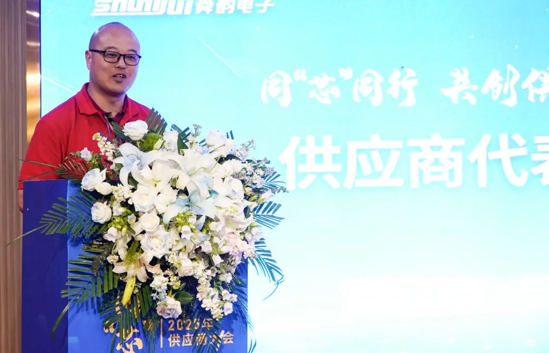 之后,通灵电子和红星辰电子的代表分别发言,回顾了与舜韵电子的合作历程,并表达了对未来合作的期待。通灵电子代表吴总表示,通灵与舜韵的合作已超28年,合作中遇到许多挑战,舜韵电子高层始终给予大力支持。红星辰电子代表吴总则回顾了与公司十多年来的合作历程,感谢舜韵电子的信任与支持,并表示未来将坚守质量底线,坚持创新,提升产品服务,助力舜韵电子拓展终端客户渠道,实现共赢发展。