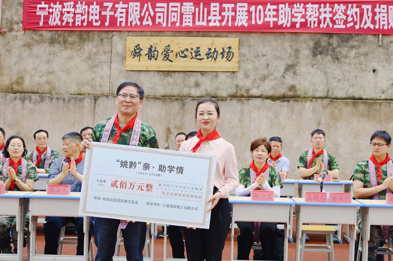 “同心共富”是统一战线工作品牌,我作为统战成员,始终坚持大统战理念,将温暖事业从四明山区拓展到市外省外贫困山区。如同宁波统一战线连续10多年帮扶鹿亭乡,2010年 - 2020年十年间,我们累计捐资捐物750余万元,捐建贵州雷山县掌雷小学(宁波舜韵爱心小学),该校如今成为深山美景。2023年,我们续签第二个十年助学计划,设立每年20万共200万元奖学基金;同时,在市委统战部、市工商联协调帮助下,把“共富帮扶”基金爱心辐射到大凉山昭觉、丽水松阳70户残疾人困难家庭,每月每户资助500元,这是践行“同心共富”的生动案例。